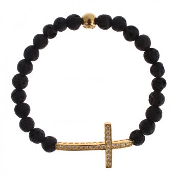 NIALAYA Women’s Gold-Plated Lava Stone Bracelet with CZ Diamond Cross