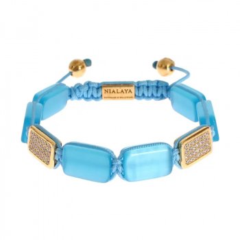 NIALAYA Blue and Gold CZ Bead Bracelet with Gold-Plated Stainless Steel