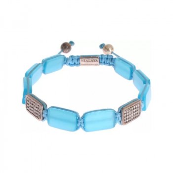 NIALAYA Blue Opal Bracelet with Sterling Silver and CZ Diamonds