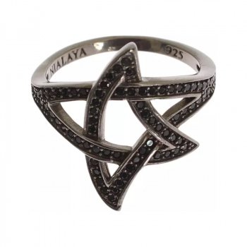 NIALAYA Black Rhodium Ring with Black CZ Crystals