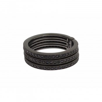 NIALAYA Women’s Black Rhodium Ring with CZ Crystals – Bold & Elegant