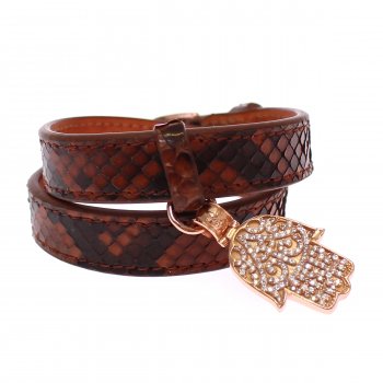 NIALAYA Men’s Snakeskin Leather Bracelet with Rose Gold & Hamsa Eye