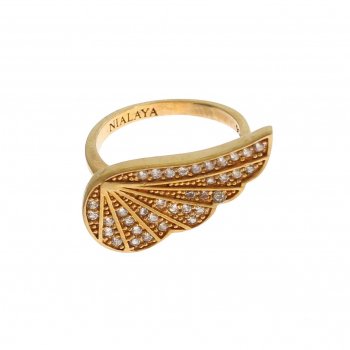 NIALAYA Gold-Plated Sterling Silver Ring with Clear CZ Crystals