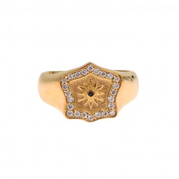 NIALAYA Men’s Gold-Plated Sterling Silver Ring with CZ Detailing