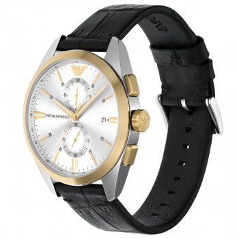 Emporio Armani Men’s Gold Stainless Steel Watch with Black Leather Strap